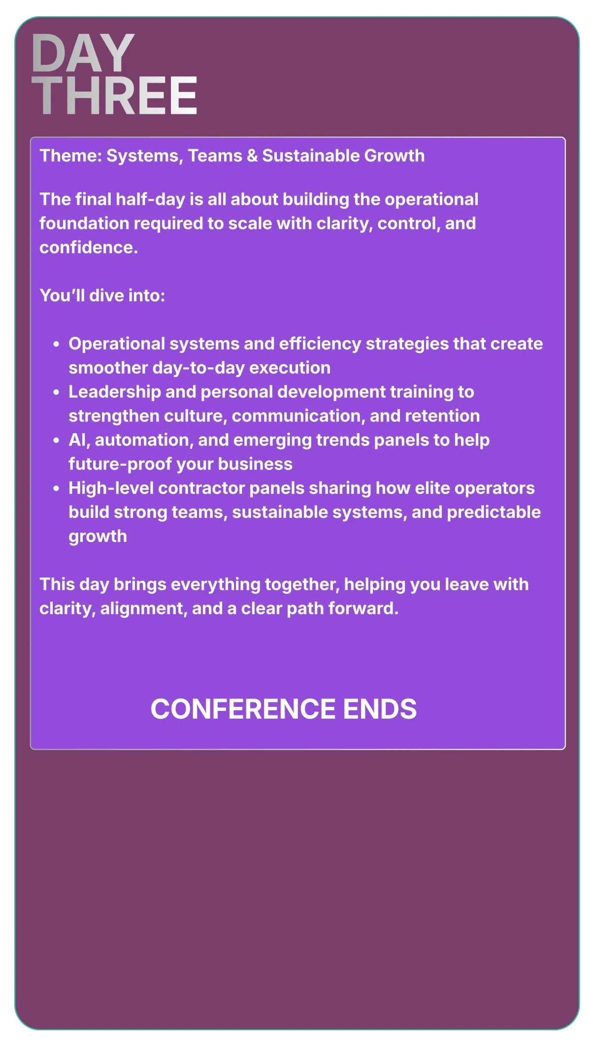Reach established service companies that are ready to scale and invest in new tools, systems, and partnerships while building real relationships with owners and leaders through mixers, sessions, and structured networking. You’ll have opportunities to showcase your expertise through visibility spots, panels, or limited sponsored sessions, all while putting your brand front and center across signage, digital assets, email promotions, and event materials. Most importantly, you’ll be supporting an event dedicated to elevating the trades and delivering real, actionable impact.